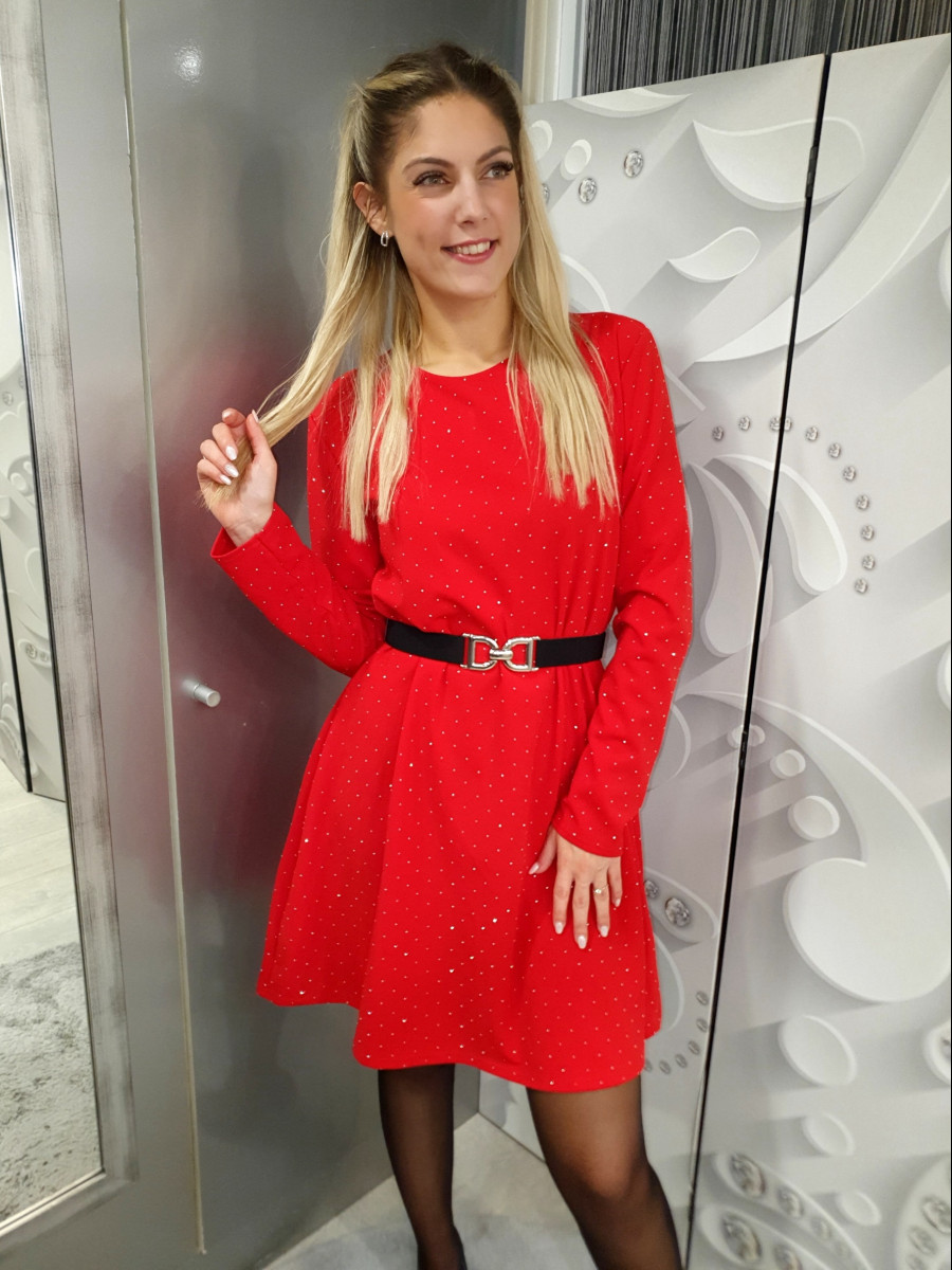 Csinos A vonalú apró csillogó ezüst kövekkel díszített alkalmi ruha.