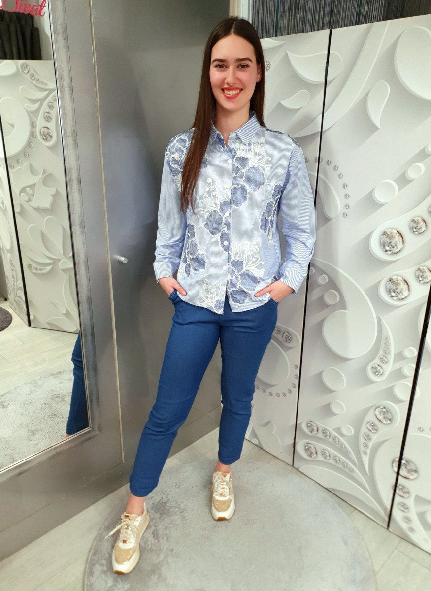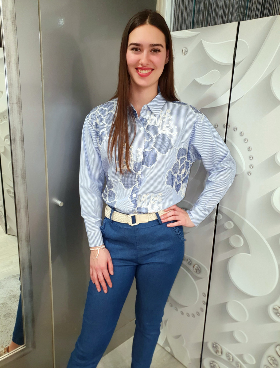 Csinos kényelmes csíkos, virághímzett ing.