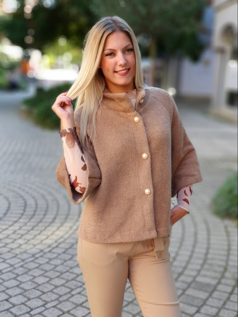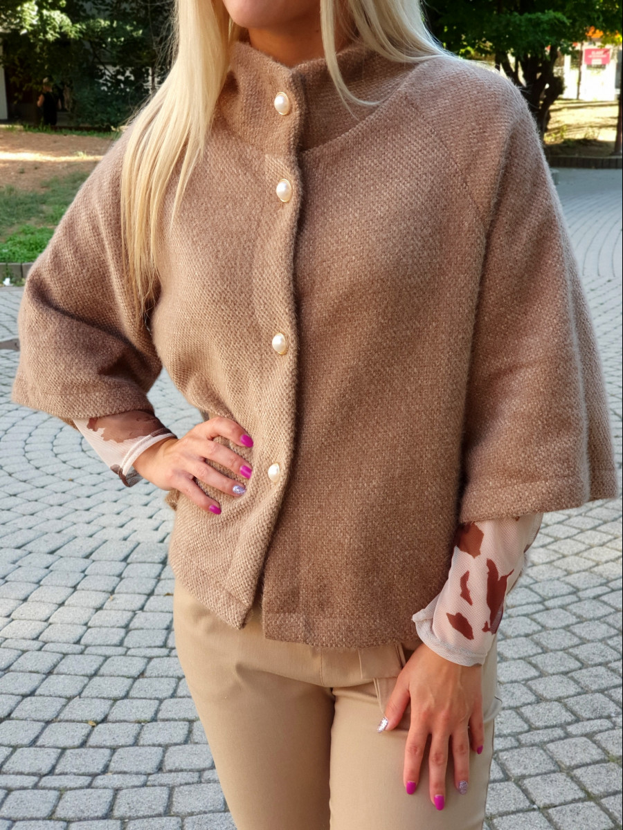 Puha anyagú nagyon kényelmes és csinos elöl gombos háromnegyed ujjú poncsó.