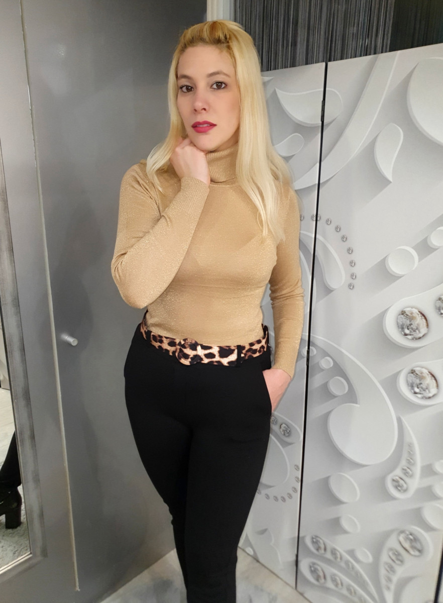 Puha anyagú, szolidan csillogó finomkötött garbó,