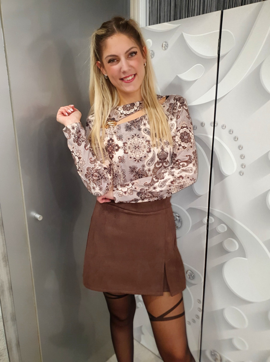 Csinos kényelmes poliamid anyagú hosszú ujjú felső, elöl extra kivágással.