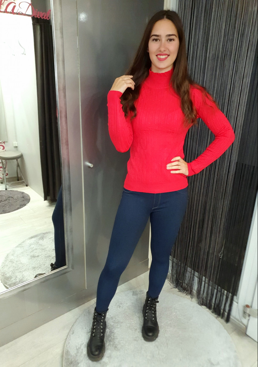 Puha anyagú csavart finomkötésű , vékonyabb álló nyakú felső.