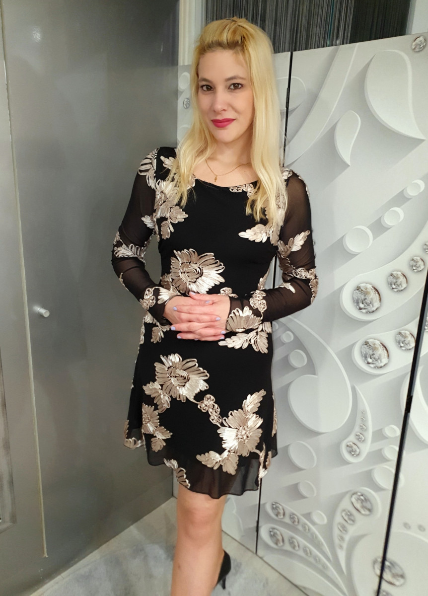 Csinos puha finom tüll anyagú dupla rétegű ruha, varrott szatén mintával.