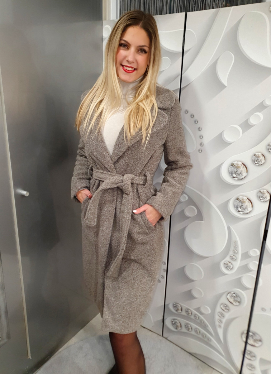 Kényelmes puha vastag meleg anyagú egy gombos derekán kötős kabát.