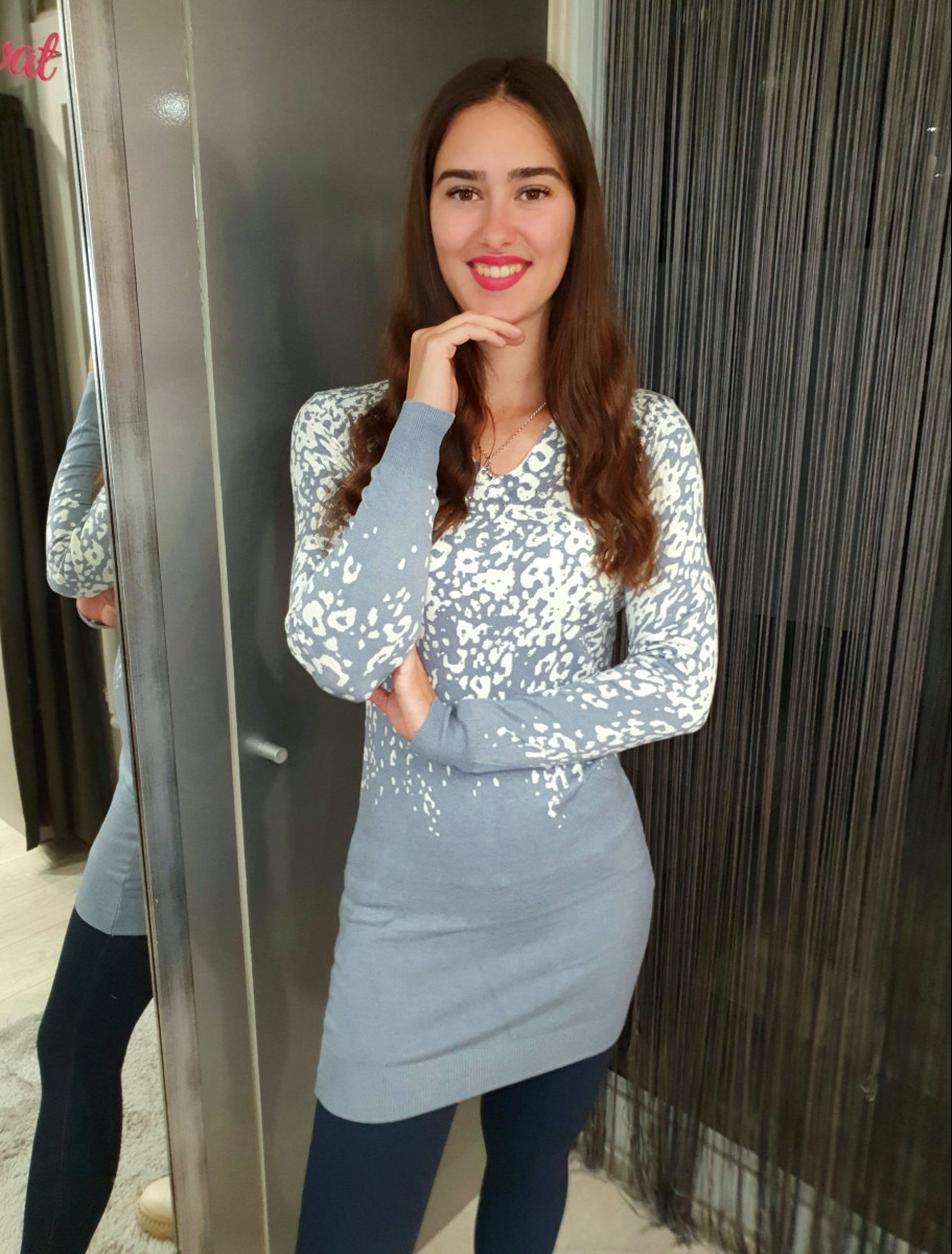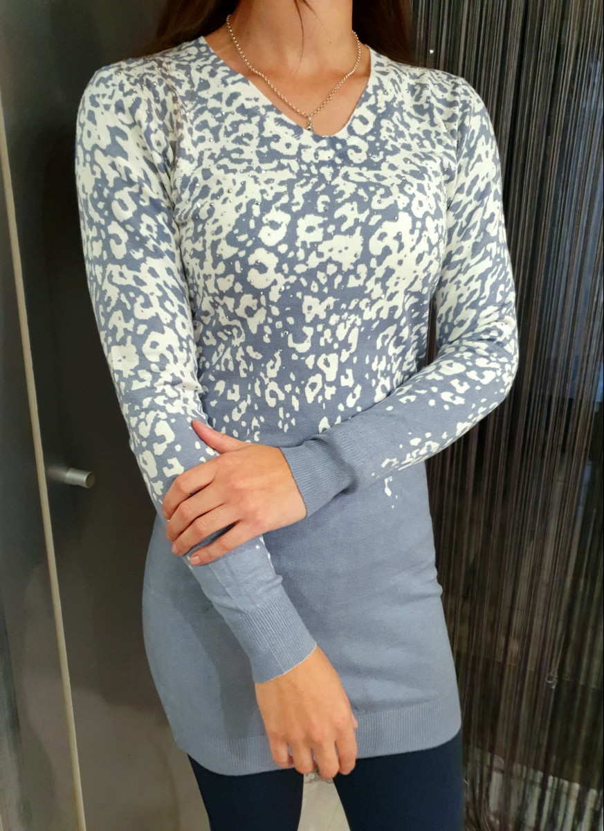 Puha anyagú testhez állú finomkötött leopárd mintás, kövekkel díszített ruha/tunika.