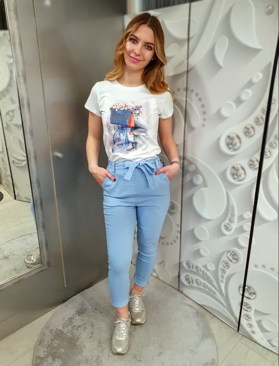 Nagyon kedvelt fazonú gumis , masnis derekú szűk szárú nadrág.