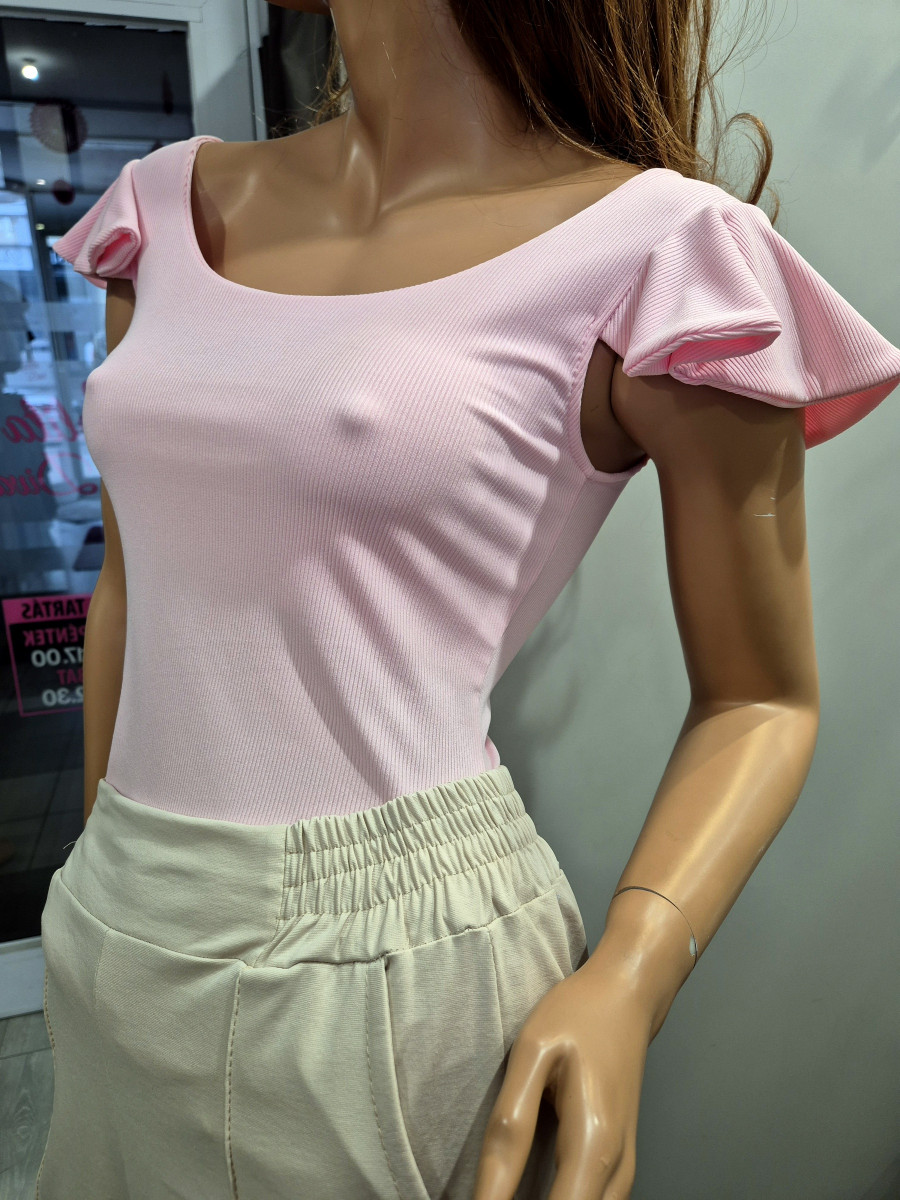 Nagyon kényelmes bordázott anyagú , vállra is lehúzható fazonú lepke ujjú felső.