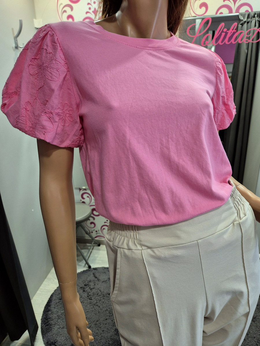 Kényelmes pamutos anyagú lazább fazonú hímzett puffos ujjú felső.